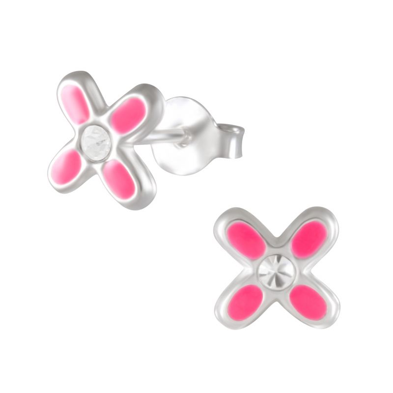 ENAMEL AND CZ FLOWER STUD EARRING